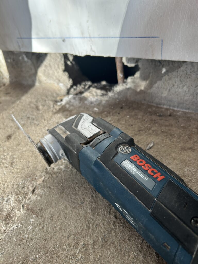 私は工具箱からマルチツールを取り出した。スイッチを入れると、「ビィィィン!」といういつもの心地よい音が響く。カットするのは壁の石膏ボード。業者さんが新しく組んでくれた壁の一部を慎重にカットして、換気口がきちんと見えるように整える。マルチツールは相変わらず頼もしい。まるでDIY界の執刀医だ。