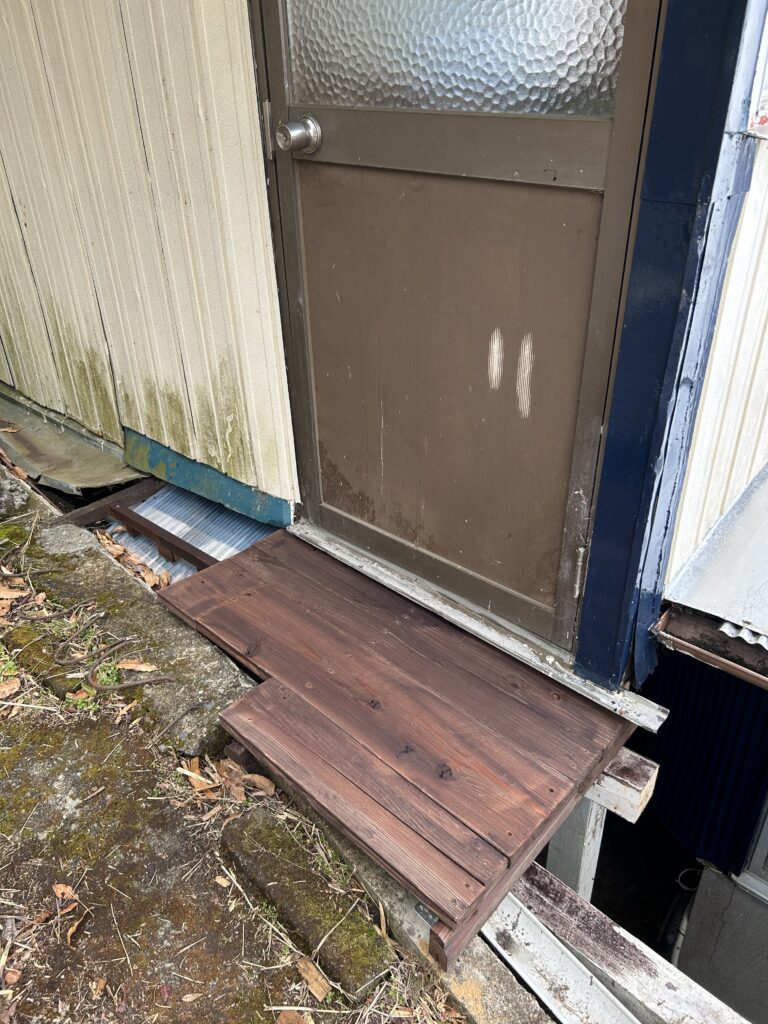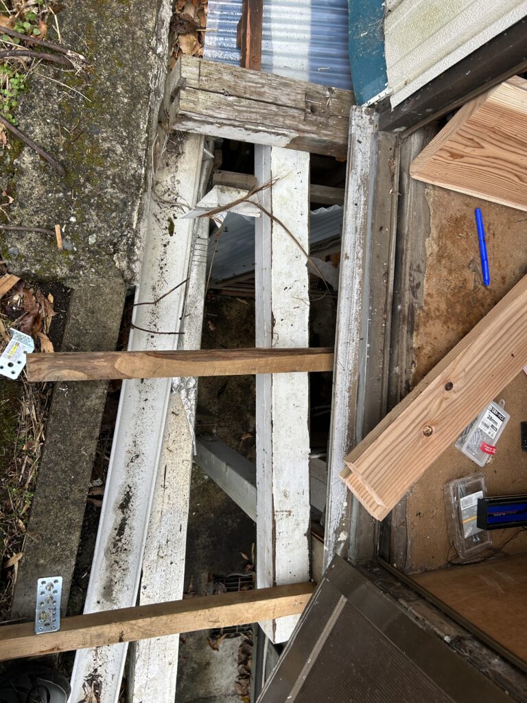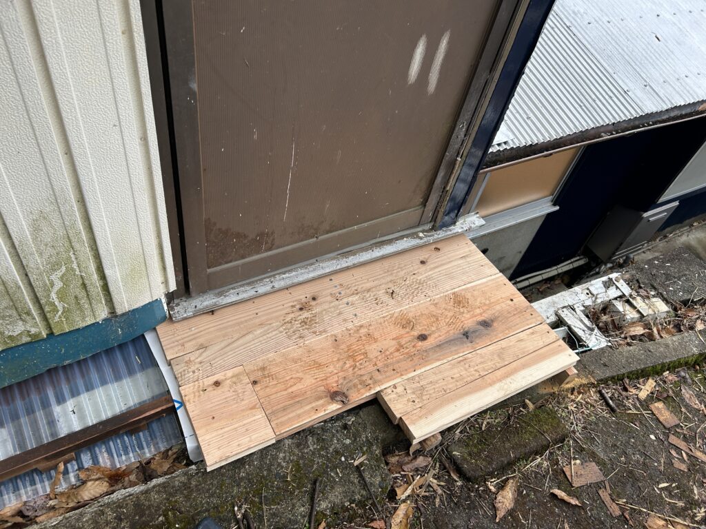 落ちたら終わりの物置前足場を、廃材でなんとかした