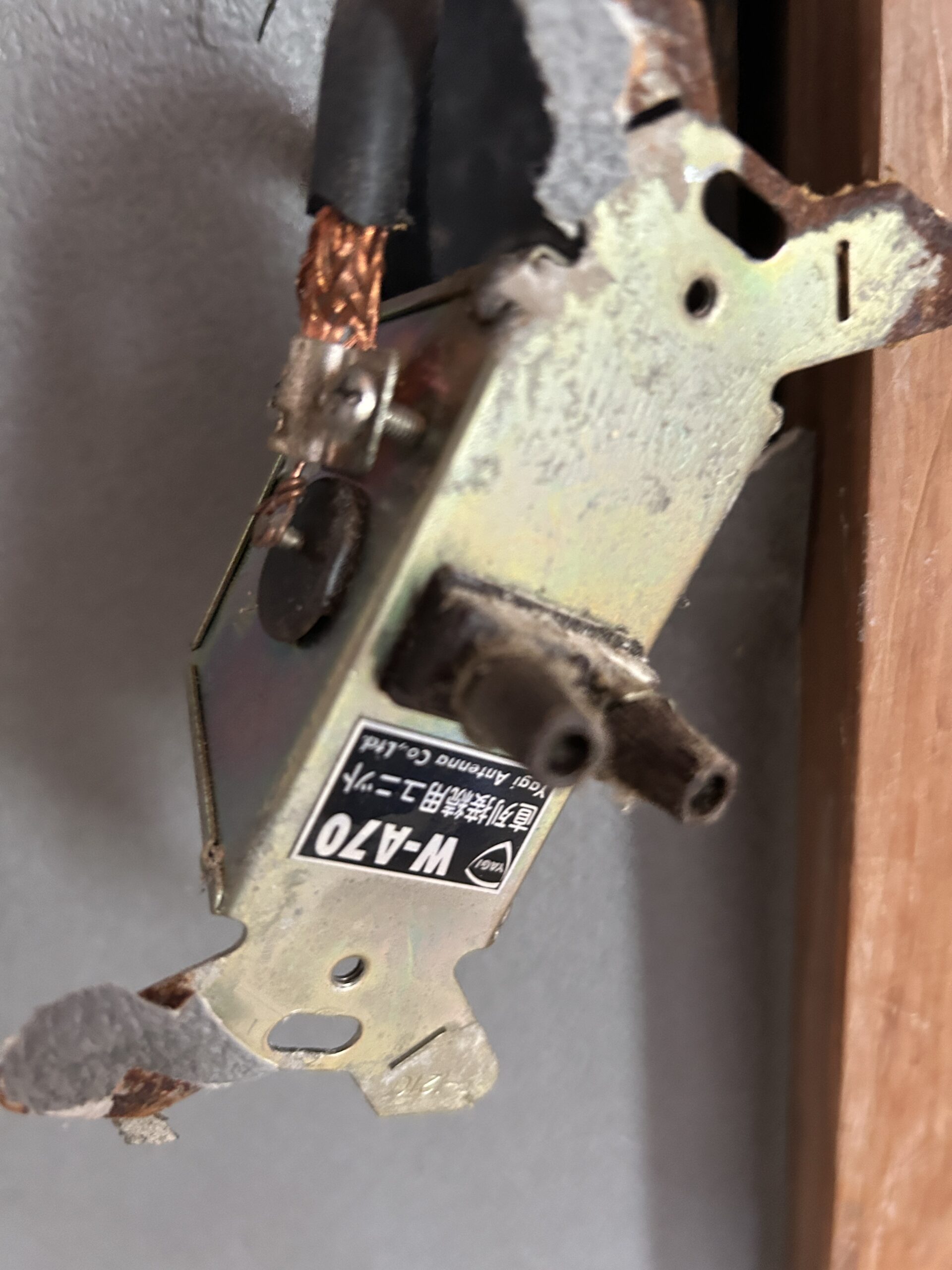 で、交換のために取り外そうとしたら……何これ? 普通は同軸ケーブルのまま壁から出すでしょ。なのにわざわざ2端子に戻している。同軸→2端子じゃなくて、その逆ならまだ理解できるのに。これは一体どういう発想なんだ。