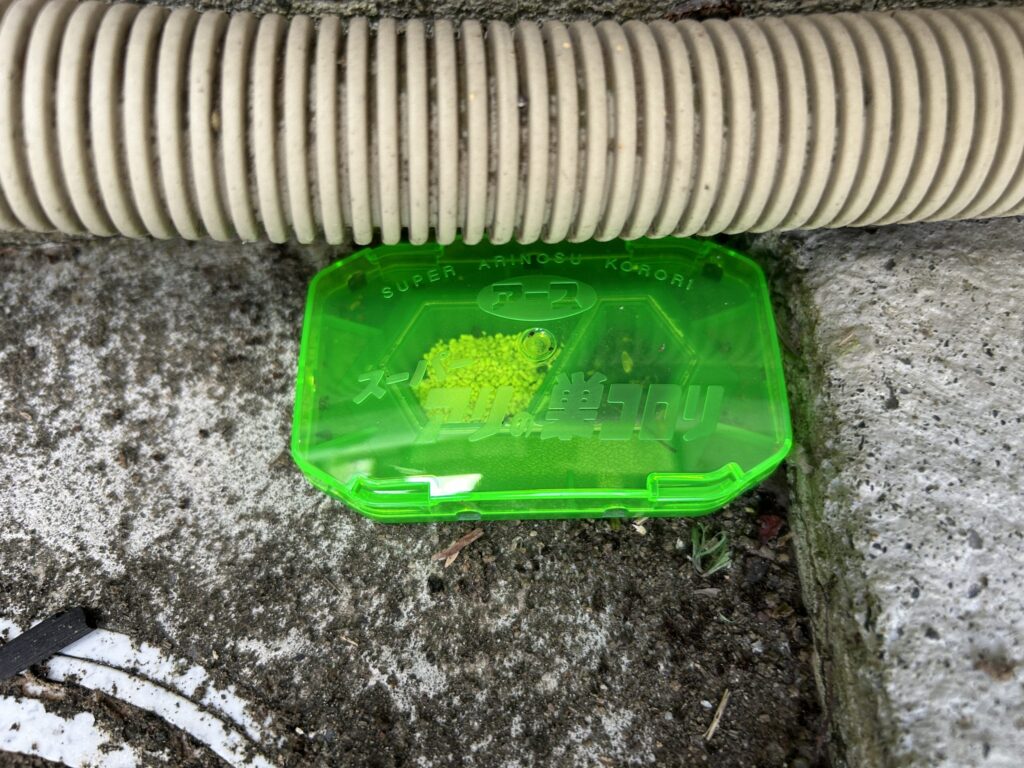 そこで秘密兵器「アリの巣コロリ」を4ヶ所に設置!