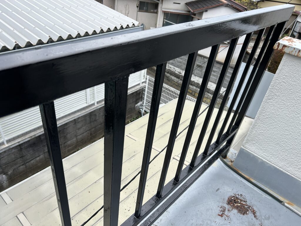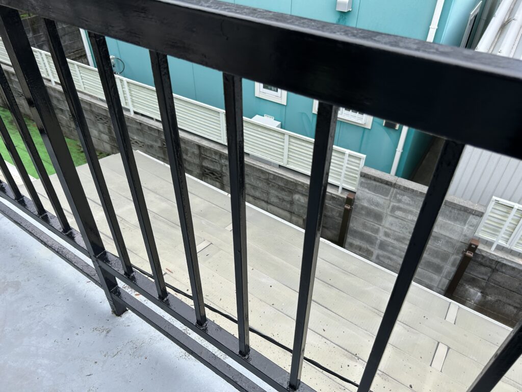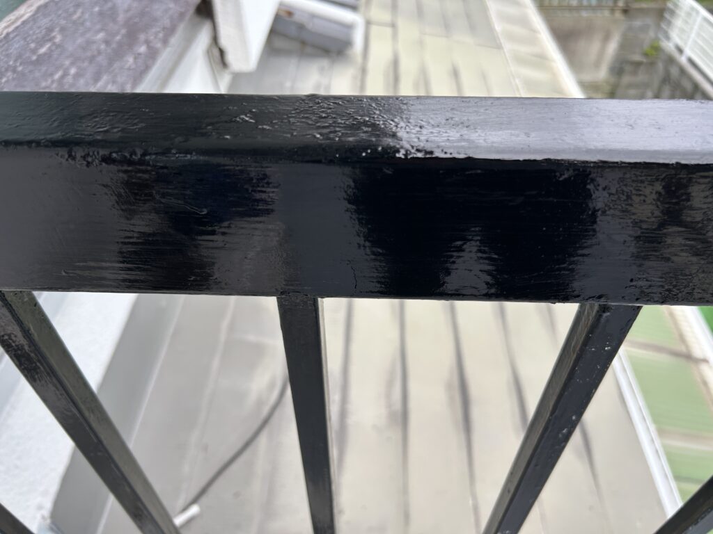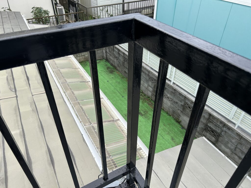 塗料が乾くにつれて、ベランダがキリッと引き締まっていく。