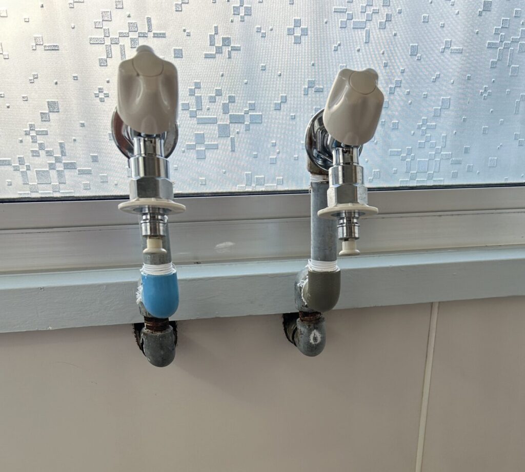 ということで、お湯側の蛇口は撤去して止水栓を施工。