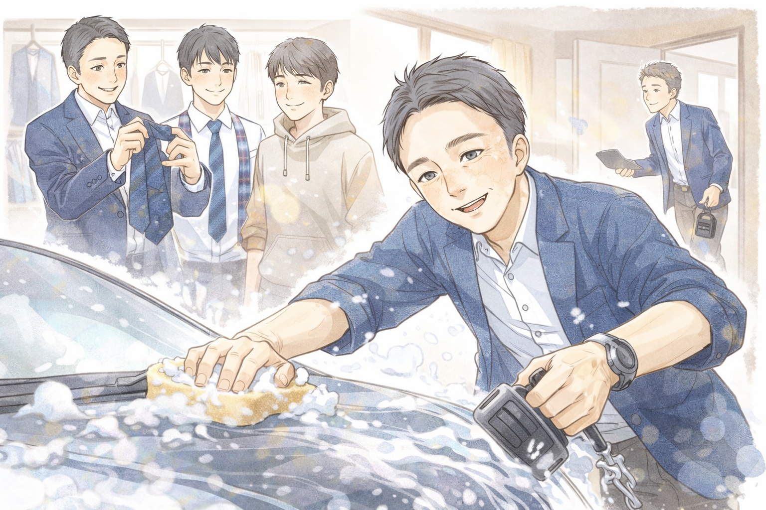 成人式を迎える次男を連れて、買い物に出かけることになった。