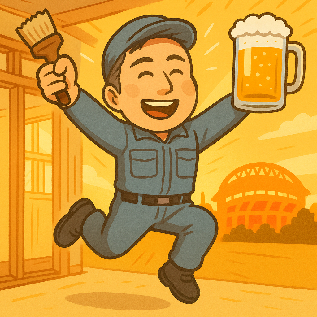 作業後のビールとスタジアム、最高のご褒美になるはず。