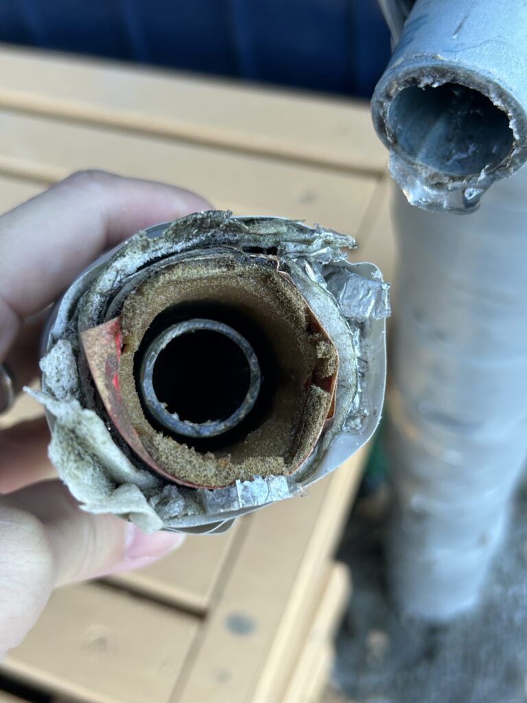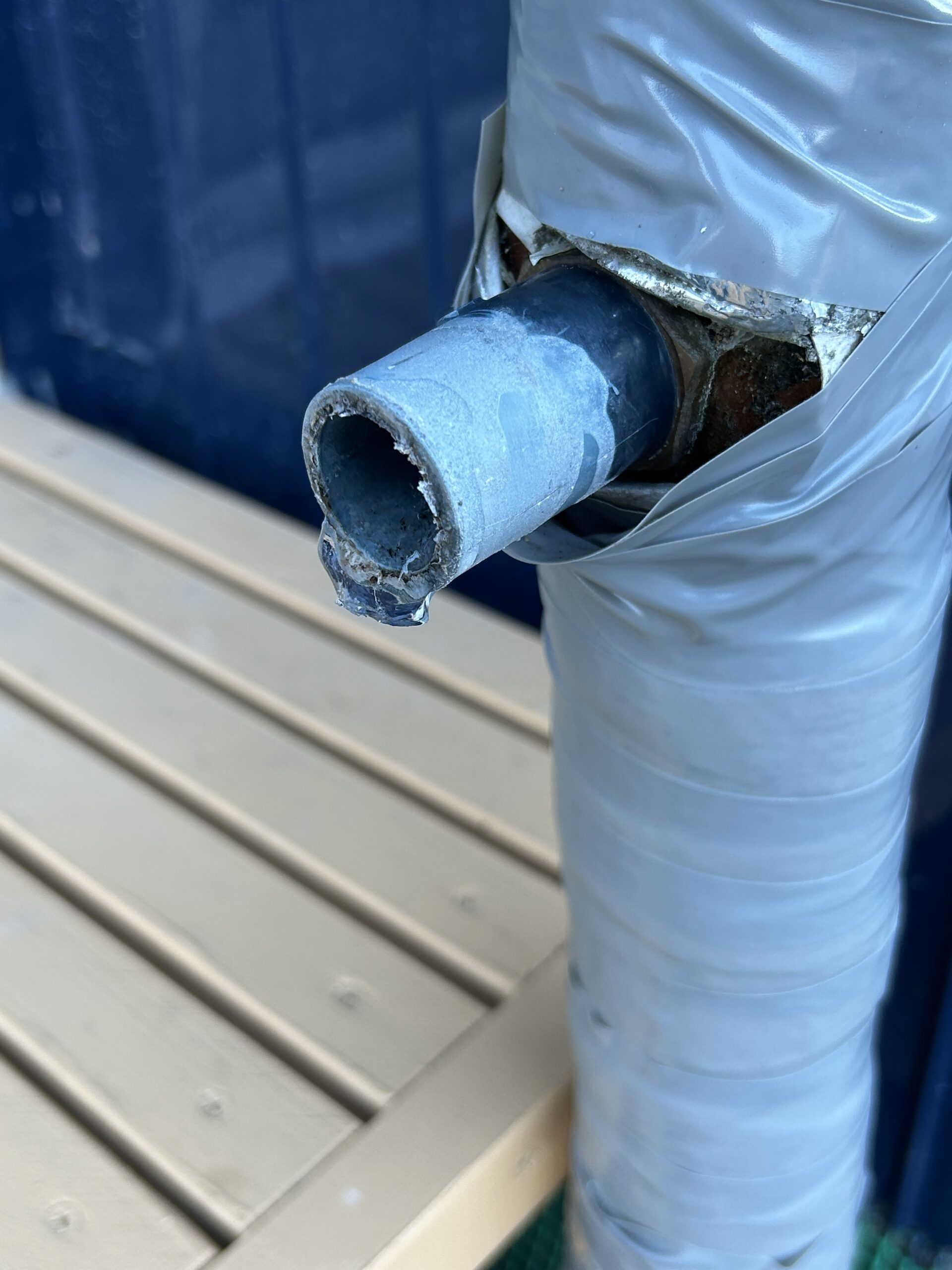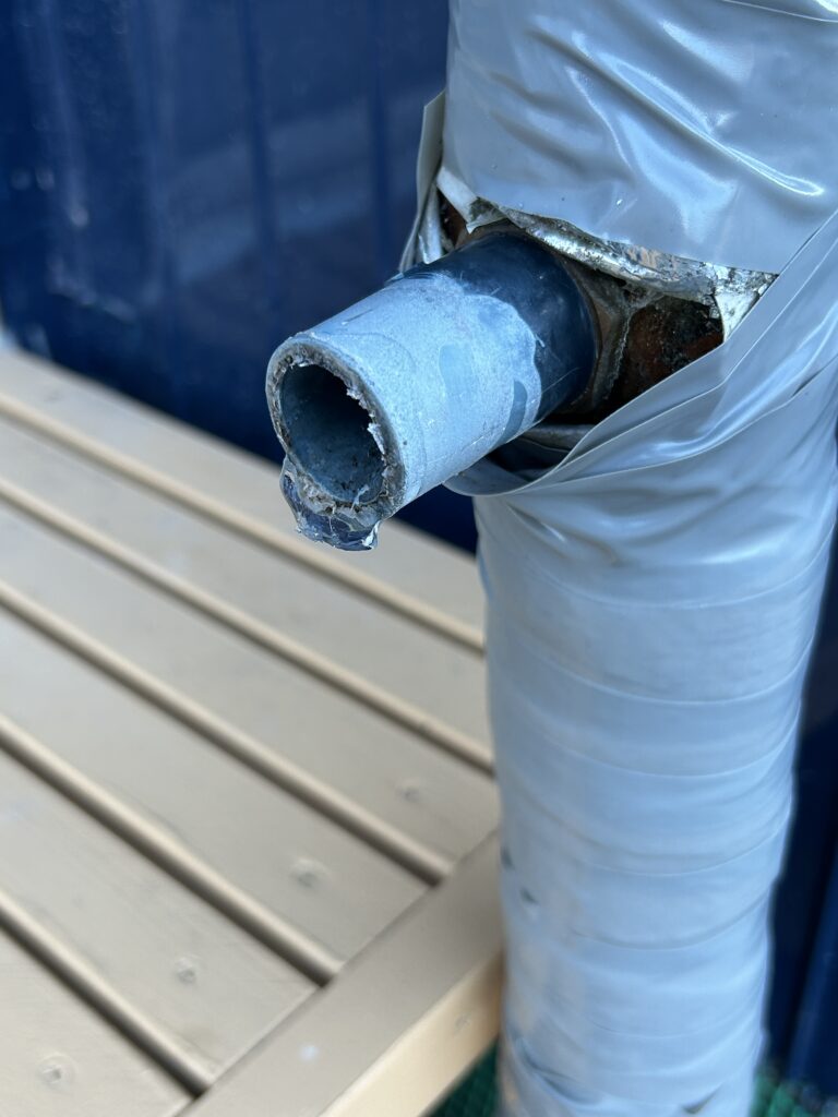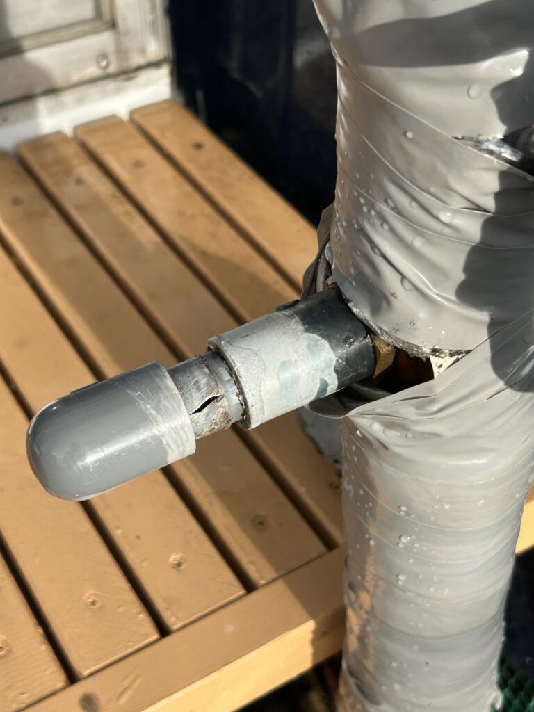 そこには、無残にもパッカーンと割れた塩ビ管の姿があった。